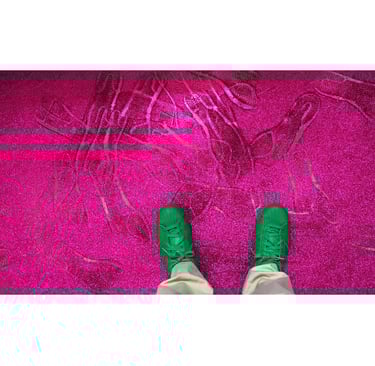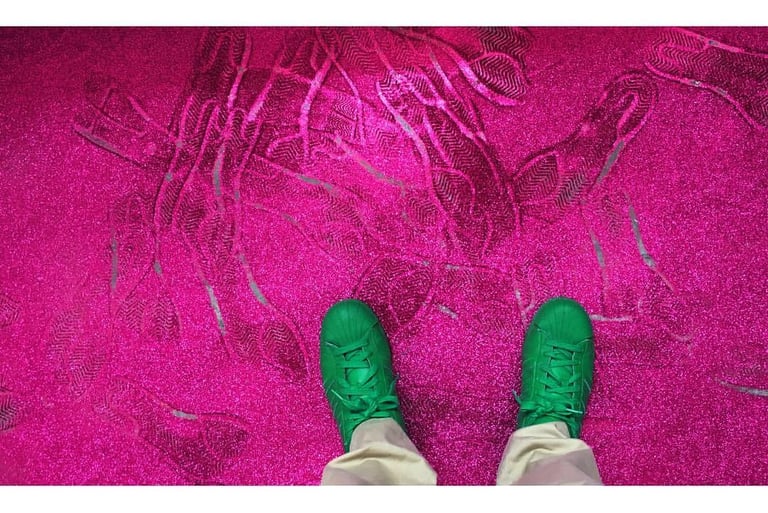 a floor covered in pink glitter that sticks to your shoes and leaves a trail.