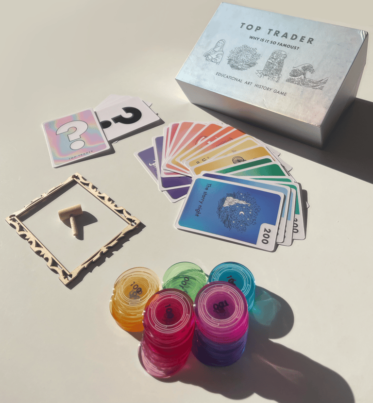 I created Top Trader (2024), a board game that uses the world of art auctions to introduce players to art history in a strategic, fun way.