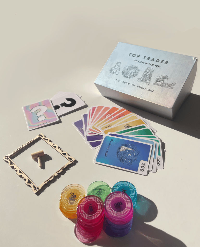 Creé Top Trader (2024), un juego de mesa que utiliza el mundo de las subastas de arte para introducir a los jugadores en la historia del arte de una manera estratégica y divertida.
